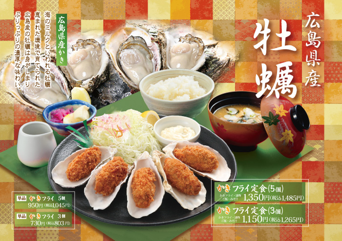 牡蠣フライ定食(5個):税込1595円 牡蠣フライ定食(3個):税込1375円